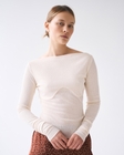 Виконаний із м’якої, еластичної тканини, що ніжно облягає тіло та приємна до дотику, цей лонгслів дарує відчуття легкості й свободи рухів упродовж дня.Модель має кокетку, що додає делікатного акценту у верхній частині, подовжений рукав і витончений виріз човником, який красиво підкреслює лінію шиї та ключиці.Цей лонгслів стане основою безлічі образів — його можна поєднувати з класичними брюками, спідницями або улюбленими джинсами. А м’які відтінки створюють спокійну, гармонійну палітру, що легко вписується у ваш гардероб.